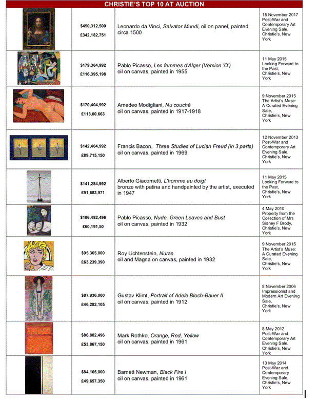 La vente record du Salvator Mundi (450,3$ million) couronne une excellente année pour la maison, marquée par un total des résultats des ventes de 5,1£ milliards (6,6$ milliards), et une croissance du 26% par rapport à 2016.