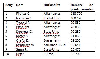 3. Extrait du Kunst Kompass 2014 : classement des 10 premiers artistes