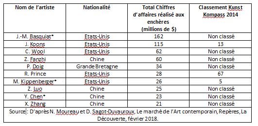 Source : N. Moureau et D. Sagot-Duvauroux, Le marché de l’art contemporain, Repères, La Découverte, février 2018.