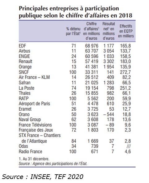 Les entreprises publiques sont définies comme l’ensemble des sociétés directement détenues majoritairement par l’État ou appartenant à des groupes dont la tête est détenue majoritairement par l’État.