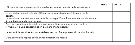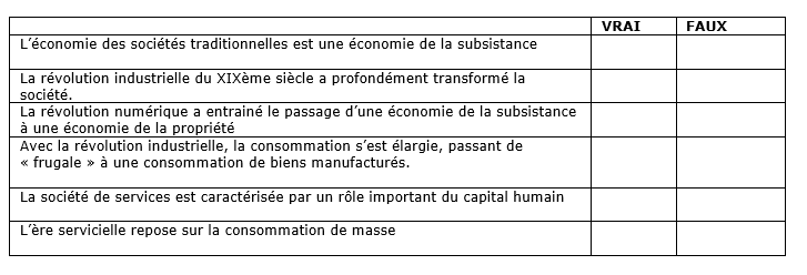 1- Vrai-Faux à partir du document 1