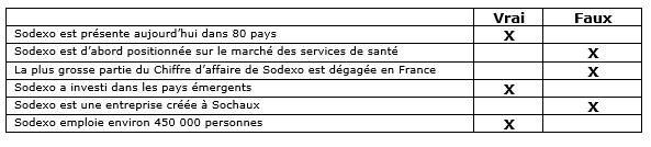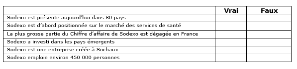 2- Entreprise Sodexo : Vrai-Faux