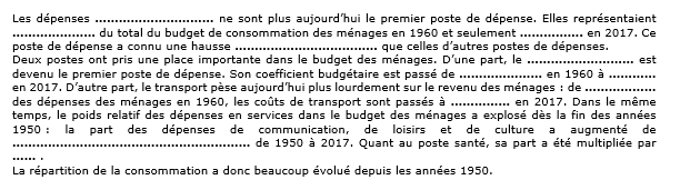 3- Compléter le texte proposé à partir des données chiffrées :