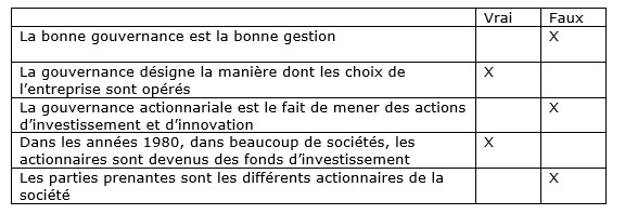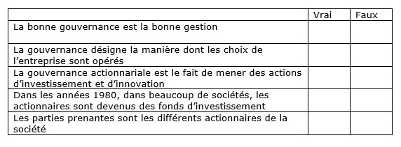 - GOUVERNANCE : Ensemble des processus, des institutions, des réglementations encadrant la manière dont l'entreprise est dirigée, administrée et contrôlée.