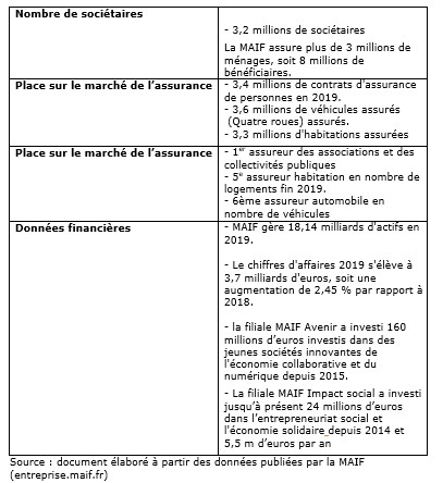 - enfin, la MAIF est l’un des assureurs des secteurs associatif, coopératif et public.