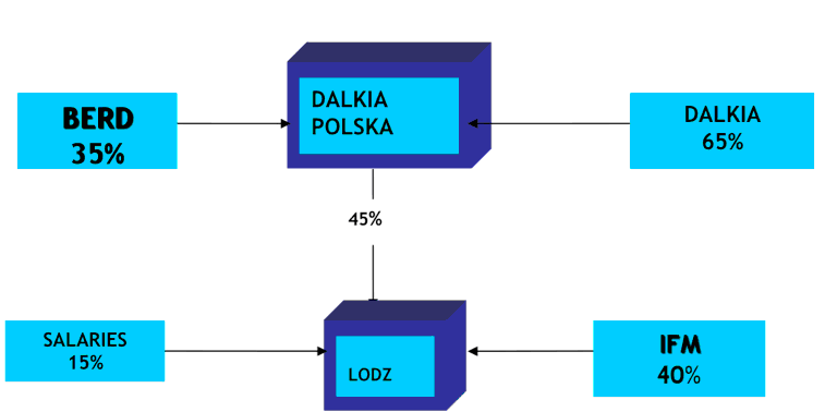 1. La Berd contribue à la transition des économies centralisées en économie de marché. Son implication est tournée principalement vers le soutien de projets privés dans plus de 27 pays d'Europe centrale et orientale. Elle participe à leur financement sous des formes multiples : prêts à long terme, prêts aux PME, prise de participation directe ou indirecte et garanties. Dans notre cas, elle procure des fonds propres à hauteur de 35% (equity commitment) à Dalkia Polska, société de tête en Pologne. La BERD prend plus de risques que lors de l'attribution d'un prêt, puisque Dalkia ne fournit aucune garantie en contrepartie de cet investissement.