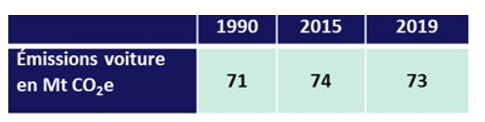 Source (CITEPA) : Les émissions de la voiture depuis 1990