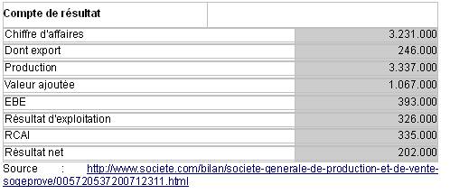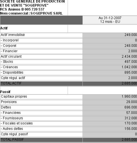 Il s'agit du dernier bilan disponible de cette société, rachetée en 2006