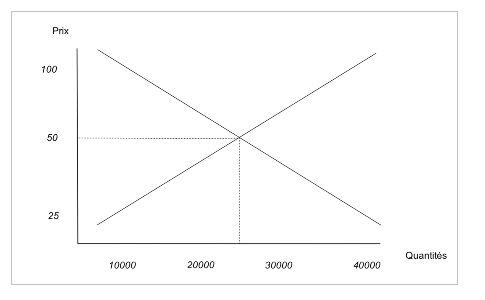 Si le prix était fixé à 100, l’offre serait de 40 000 et la demande serait de 10 000