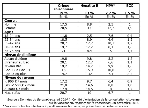 Source : J. Raude « L’hésitation vaccinale : une perspective psychosociologique », Bulletin de l’Académie Nationale de Médecine, séance du 2 février 2016.