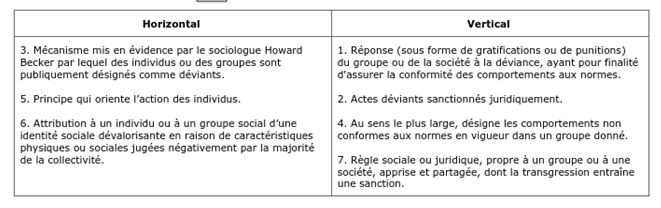 Imprimez ou recopiez cette grille de mots croisés, puis complétez-la en retrouvant les notions liées au chapitre sur la déviance.