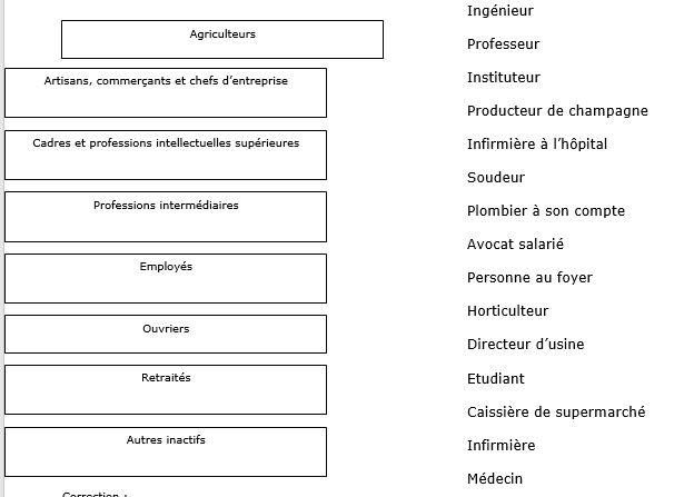 Retrouver les catégories socioprofessionnelles correspondants à chaque exemple :