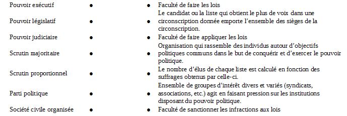 1) Quels sont les différents acteurs de la vie politique évoqués dans ce document ?