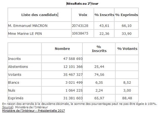 Ainsi on peut refaire le calcul du taux de participation au 1er tour : 20.5 millions / 46 millions = 44.6%