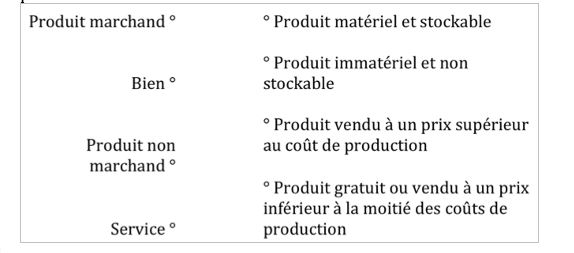 Produit marchand : produit vendu à un prix supérieur au coût de production