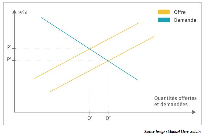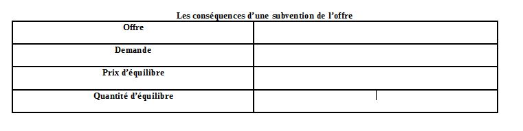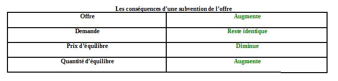 1) Comment la droite d’offre s’est-elle déplacée suite à la mise en place de la subvention ?