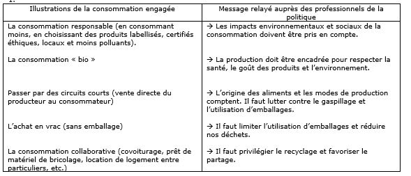 1. Visitez cette page et recensez des illustrations de la consommation engagée et justifiez votre réponse en indiquant le message relayé auprès des professionnels de la politique.