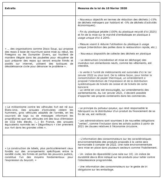 Exercice 2 : De la consommation engagée à la loi relative à la lutte contre le gaspillage et à l'économie circulaire