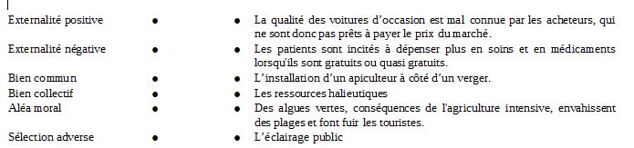 Reliez chaque exemple à la notion appropriée :