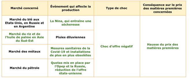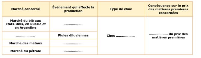 Un ………………… est une variation imprévue des conditions de production qui affecte les producteurs, et donc la quantité qu’ils sont prêts à offrir sur le marché.