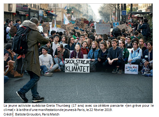 Greta Thunberg, né Stockholm en 2003 à, est une militante pour le climat. A 15 ans, elle proteste devant le parlement suédois contre l'inaction face au changement climatique et lance, en novembre 2018, la Skolstrejk för klimatet (« grève de l'école pour le climat »).