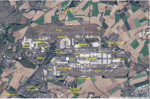 Construit à partir de 1965 et mis en service en 1974, l’aéroport de Paris Roissy-Charles de Gaulle a opéré en 2019 le transit de 76 millions de passagers, ce qui en fait le premier aéroport européen et le neuvième aéroport mondial. Si ces chiffres sont en net recul en 2020 du fait de la crise du Covid-19, cela n’ôte pas à cet espace son incontestable place dans la mondialisation. En effet, tant en termes de passagers, de fret et de mouvements d’avion, l’aéroport Roissy-Charles de Gaulle est un hub aéroportuaire, c’est-à-dire un pivot dans le système de transport aérien mondialisé.