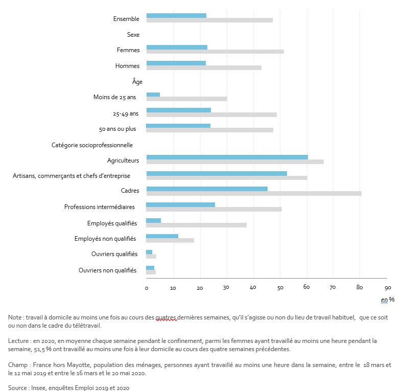 Q2. Vous présenterez l’évolution du télétravail en France entre 2019 et 2020.