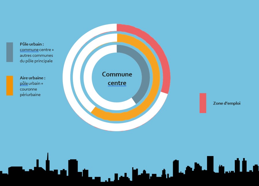 Objectif : distinguer les notions de commune-centre, pôle urbain, couronne, aire urbaine, zone d’emploi