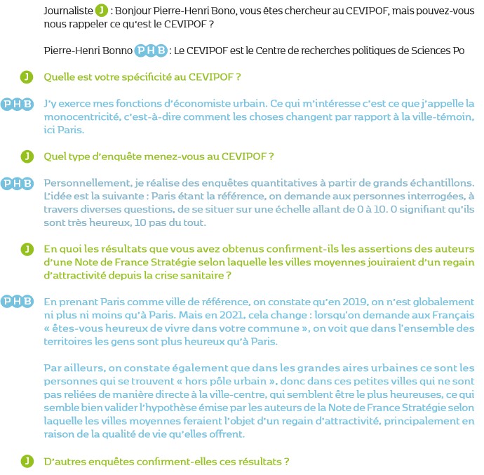 - d’autre part la crise COVID est vue comme une opportunité pour les villes moyennes avec les aspirations des ménages à avoir plus d'espace, plus de proximité avec la nature, favorisée par le développement du télétravail.