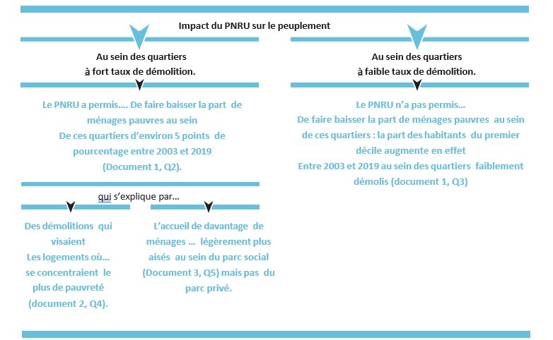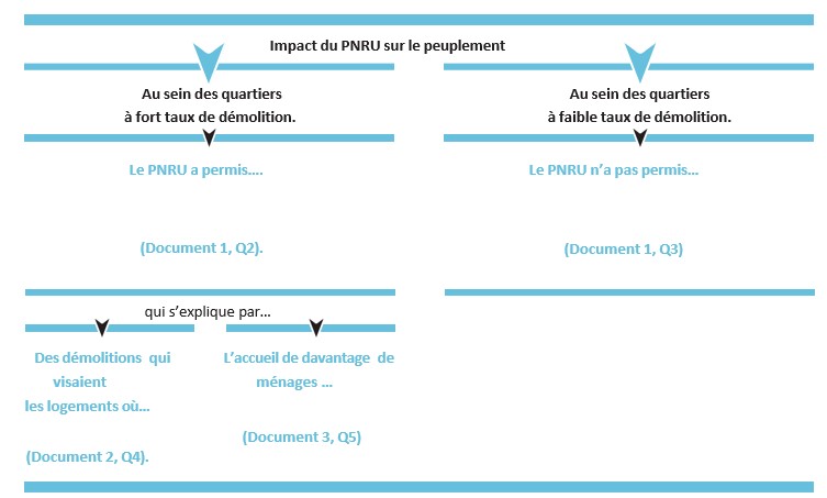 Synthèse : Complétez le schéma suivant qui présente l’impact du PNRU sur le peuplement au sein des quartiers traités.