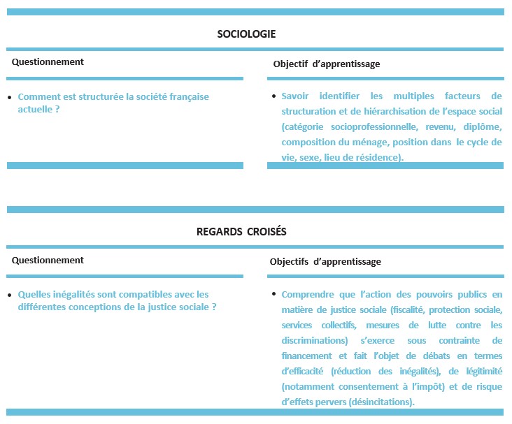 Dans le cadre de l’enseignement de spécialité de terminale générale, les élèves auront étudié au cours du chapitre Quelles inégalités sont compatibles avec les différentes conceptions de la justice sociale ? le caractère cumulatif et multiforme des inégalités. Ceci leur permettra de comprendre pourquoi la puissance publique intervient en faveur de la justice sociale et d’aborder la question du débat portant sur l’efficacité de cette dernière.