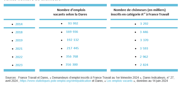Q2. Comparez le nombre d’emplois vacants au nombre de chômeurs.