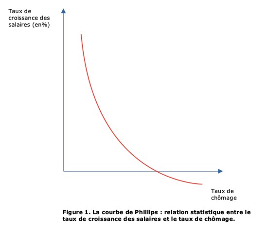 La courbe de Phillips désigne d’abord une relation statistique entre le taux de chômage et la variation des salaires nominaux, mise en évidence par l’économiste néo-zélandais Alban Phillips dans un article de 1958. Sur la base de cette relation, une courbe théorique a été élaborée, elle postule une relation inverse entre chômage et inflation et la possibilité d’un arbitrage entre ces deux objectifs contradictoires pour les politiques conjoncturelles. Cette courbe a servi de base aux politiques keynésiennes jusqu’aux années 1970, elle a ensuite été remise en cause, notamment par le modèle monétariste.