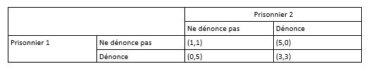 - si les deux se dénoncent mutuellement, chacun est condamné à trois ans de prison