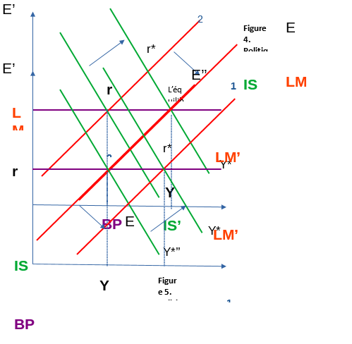 A contrario, en régime de changes flottants, la politique monétaire devient pleinement efficace (elle est libérée de la contrainte de défense du change, voir figure 5), alors que la politique budgétaire devient inefficace (figure 4)
