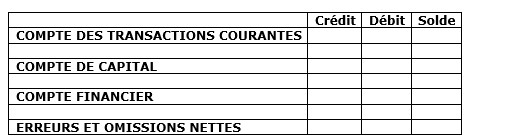 3) Que met-on au « crédit » et au « débit » dans le compte des transactions courantes ?
