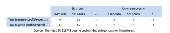 Document 3 : Évolution des marges bénéficiaires et des taux de profit aux États‐Unis et dans l’Union européenne (1997‐2015)