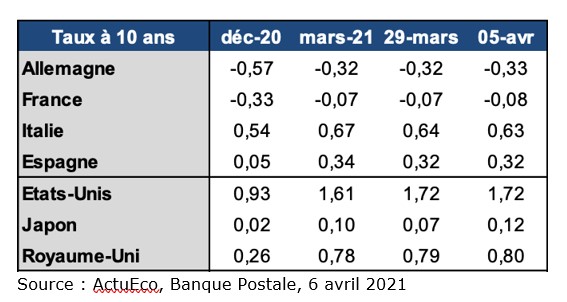 3) Comment évoluent les taux d’intérêt entre décembre 2020 et avril 2021 ? Pourquoi ?