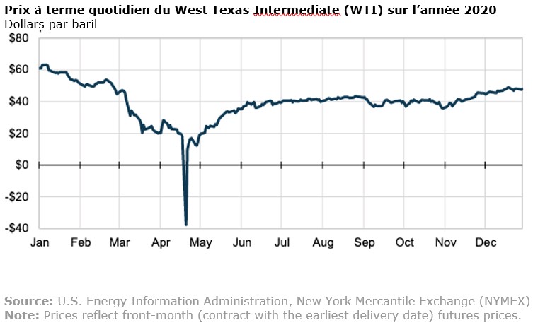 C’est ce qui s’est passé sur le NYMEX le 20 avril 2020 : les traders qui auraient dû prendre livraison du pétrole ont préférer payer, jusqu’à 40 dollars le baril, pour se débarrasser des contrats à terme de livraison afin d’éviter les coûts de stockage.
