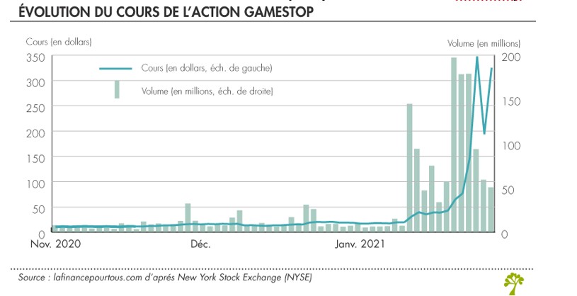 3) En décembre 2020, salarié d’un hedge fund, vous décidez d’acheter à découvert 1000 actions GameStop. Vous vendez 5 dollars les actions que vous avez emprunter pour trois mois en anticipant qu’en février 2021 le cours boursier sera de 3 dollars. Pourquoi pouvez-vous anticiper une baisse du titre GameStop ? Que s’est-il effectivement passé pour vous ?