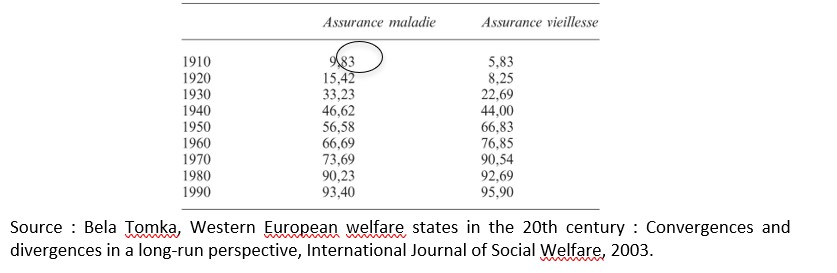 En 1910, un peu plus de 9 européens sur 100 bénéficiaient d’une assurance maladie.