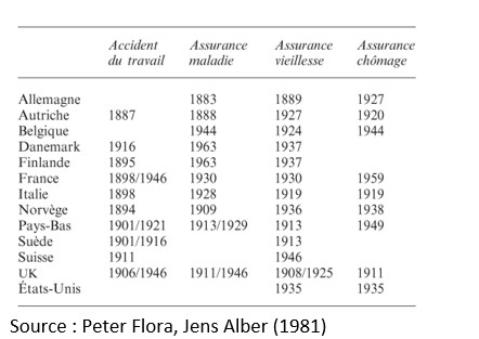 Source : Merrien, François-Xavier. « L'État-providence dans une perspective historique et conceptuelle », François-Xavier Merrien éd., L’État-providence. Presses Universitaires de France, 2007, pp. 11-29