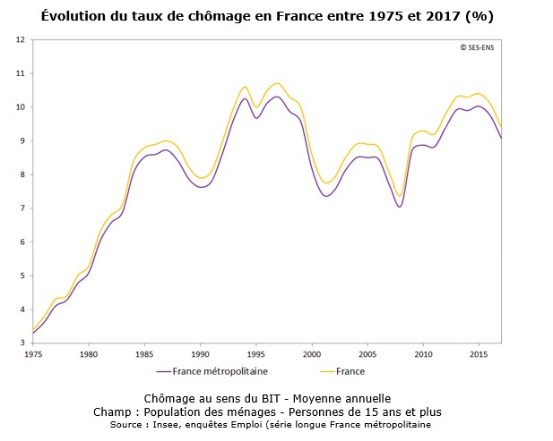 3) Comment le taux de chômage français a-t-il évolué entre 1960 et 2021 ?