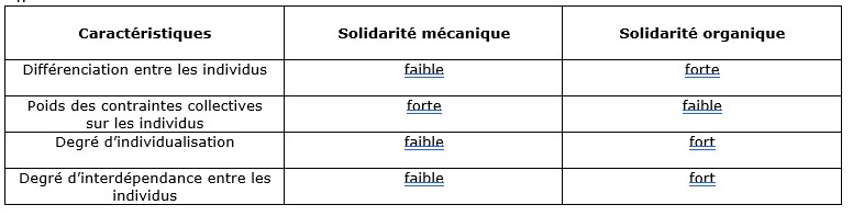 Les sociétés traditionnelles sont fondées sur la ressemblance alors que les sociétés modernes sont fondées sur la complémentarité/l’interdépendance.