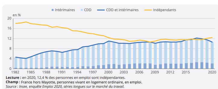 Il s’agit du phénomène de précarisation de l’emploi, c'est-à-dire du développement des emplois précaires.