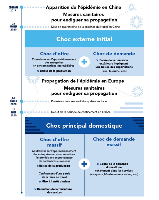 3) Non, même si elle constitue un double choc d'offre à la fois externe et interne à la suite des confinements, la crise du COVID est aussi un double choc de demande interne et externe avec une baisse de la demande extérieur et une baisse de la demande domestique liée aux restrictions de déplacement et aux confinements.