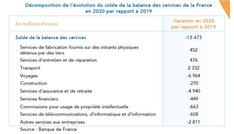 On observe une dégradation des soldes des échanges de biens comme des services en 2020.