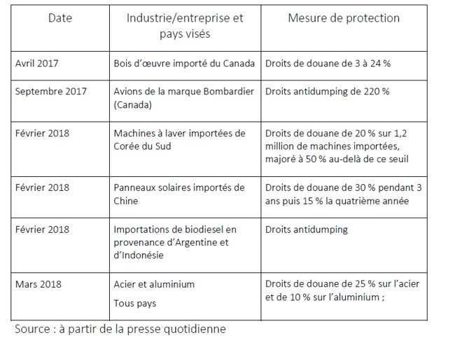 2- Principales mesures protectionnistes mises en oeuvre par les États-Unis depuis janvier 2017