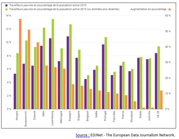 Document 7 : Augmentation du nombre de travailleurs pauvres en Europe 2010-2019