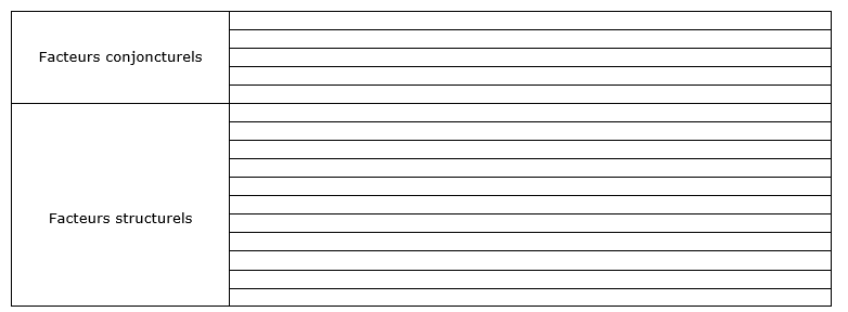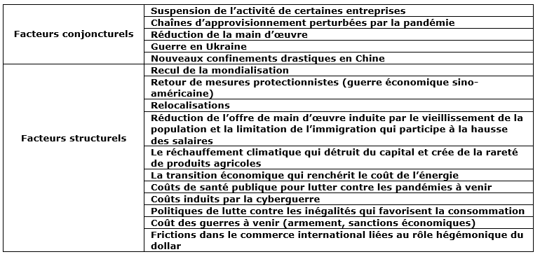 Remplir le tableau ci-dessous faisant l’état des facteurs favorables à l’inflation au début de l’année 2022.